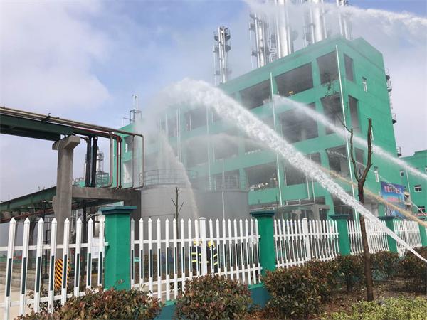 本次消防演練模擬閏土染料公司噴塔尾氣處理裝置起火這一突發(fā)狀況,通過突發(fā)情況報警、人員疏散、滅火救援三個環(huán)節(jié),啟動火災(zāi)撲救應(yīng)急預(yù)案。閏土染料公司安全員在巡查車間時,發(fā)現(xiàn)噴塔尾氣處理裝置起火,隨即向公司安環(huán)科長匯報火災(zāi)情況,并通知報備股份公司HES部門和園區(qū)保衛(wèi)部。公司領(lǐng)導(dǎo)接到火情電話后立即通知車間工作人員撤離,并聯(lián)系各志愿消防隊隊長,根據(jù)規(guī)定方案實施消防救援。各志愿消防支隊模擬真實火災(zāi)事故,有效地配合、協(xié)調(diào)、支援,并以最短時間滅火成功,成功疏散全體員工。