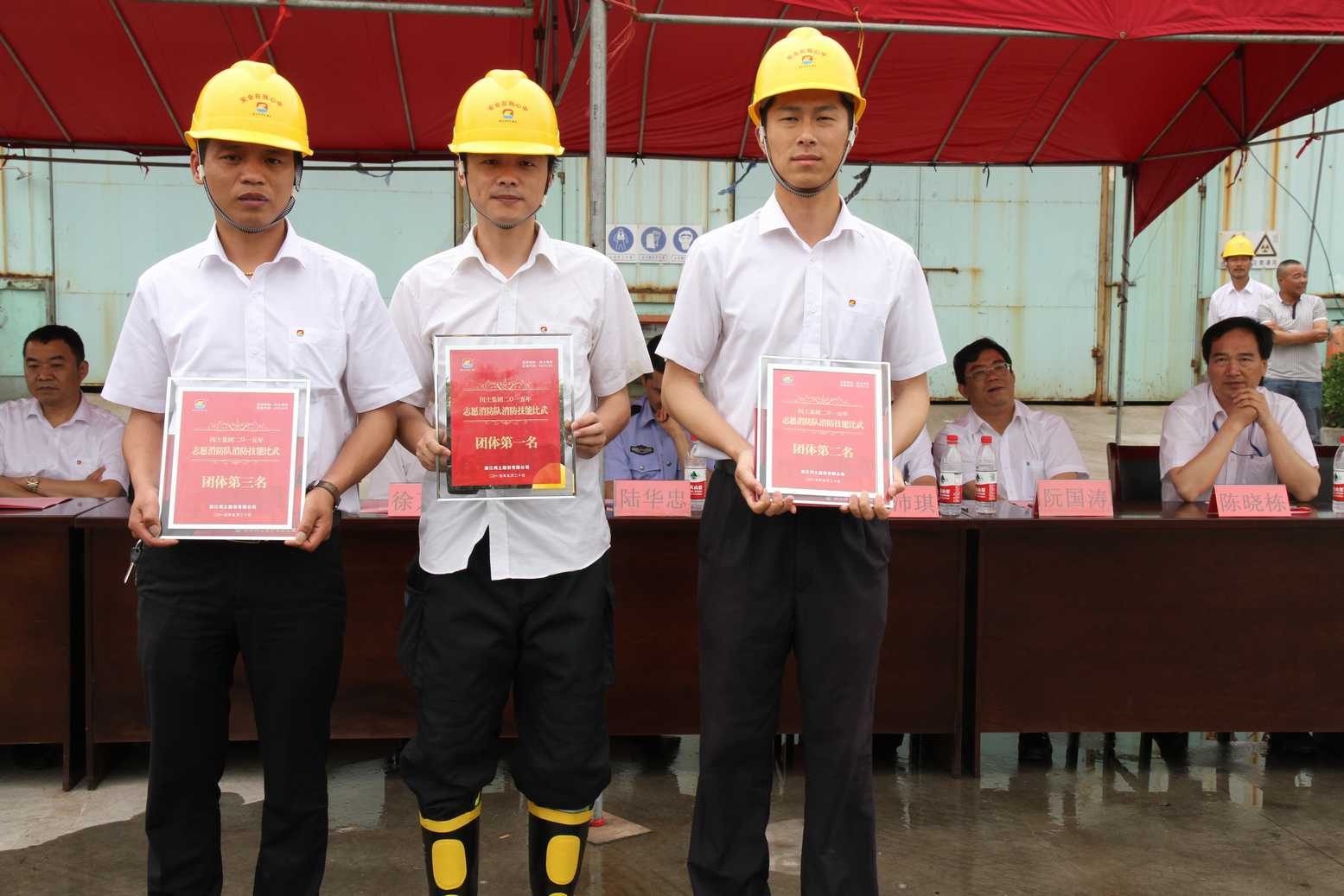 為迎接國家第十四個“安全生產月”,切實做好集團公司安全生產工作,不斷提高公司各志愿消防隊隊員處置突發事件的應急救援能力和自防自救能力,5月20日上午,閏土集團(股份)志愿消防隊消防技能比武大賽在閏土生態工業園內順利舉行。股份公司總經理徐萬福、副總經理阮光棟、總經理助理傅沛琪、各子公司董事長、總經理等出席參加。