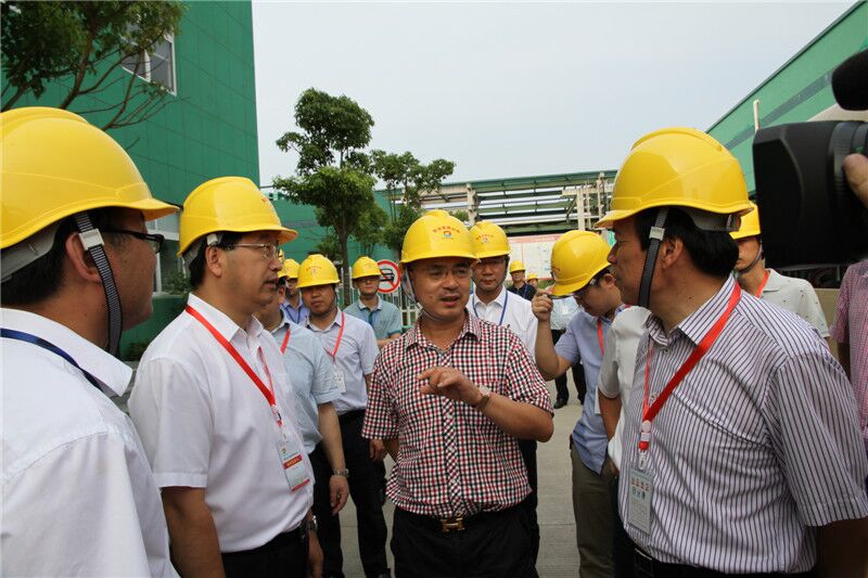 8月17日,由紹興市委書記陳金彪(左三)帶隊(duì)的督查組到閏土生態(tài)工業(yè)園內(nèi)的閏土新材料公司督查安全生產(chǎn)工作。陳金彪書記一行深入生產(chǎn)一線,了解企業(yè)危化品的儲(chǔ)存、使用情況,詳細(xì)詢問了危化品的物理化學(xué)特征、緊急處置辦法和應(yīng)急預(yù)案,并聽取了企業(yè)負(fù)責(zé)人關(guān)于生產(chǎn)工藝流程的介紹。陳書記對(duì)閏土新材料公司的安全生產(chǎn)和危化品管理工作表示認(rèn)可,并囑咐企業(yè)一定要時(shí)刻緊繃安全生產(chǎn)這根弦,企業(yè)在抓效益的同時(shí),更要抓好安全、環(huán)保工作。紹興市副市長(zhǎng)楊文孝、紹興市上虞區(qū)區(qū)委書記孫云耀、紹興市上虞區(qū)區(qū)委常委、杭州灣上虞經(jīng)濟(jì)技術(shù)開發(fā)區(qū)管委會(huì)主任胡文煒、紹興市上虞區(qū)副區(qū)長(zhǎng)王永表等領(lǐng)導(dǎo),閏土股份副董事長(zhǎng)阮加春、閏土股份副總經(jīng)理阮光棟、閏土新材料公司總經(jīng)理周杰文等一起陪同。